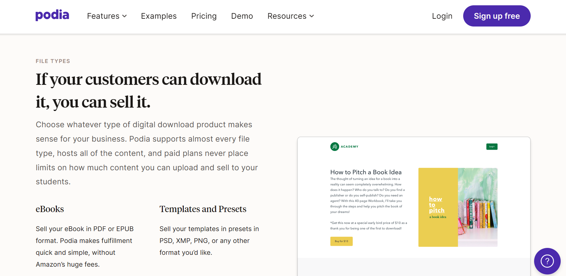 - Podia is a full-service ecommerce platform for selling digital goods like online courses, webinars, memberships, and downloads.